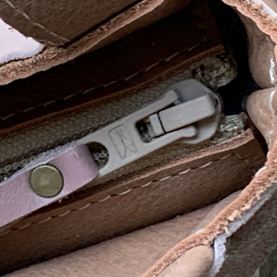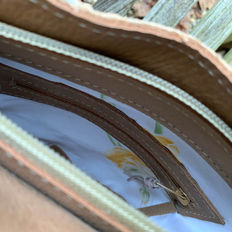 Mooie zachte zandkleuren. En ook al is het een kleintje, ze is wel voorzien van een afsluitbaar binnenvak en een sleutelkoord!!