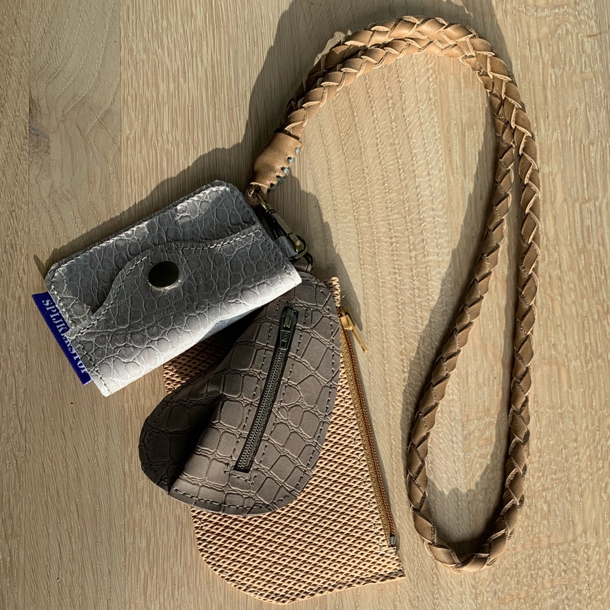 Een tasje voor je pasjes, oortjes, sleutels en kleine prulletjes, niet te groot zodat het niet te zwaar wordt.