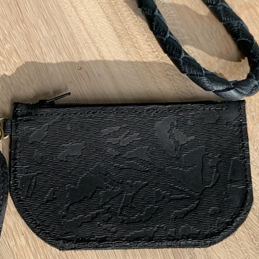 Een tasje voor je pasjes, oortjes, sleutels en een klein prulletje, niet te groot zodat het niet te zwaar wordt.
