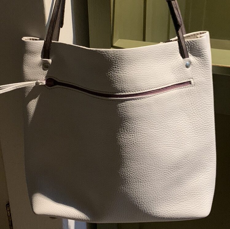 Een wat vierkante totebag, lekker om mee naar het werk te gaan, of gewoon een mooie witte handtas.